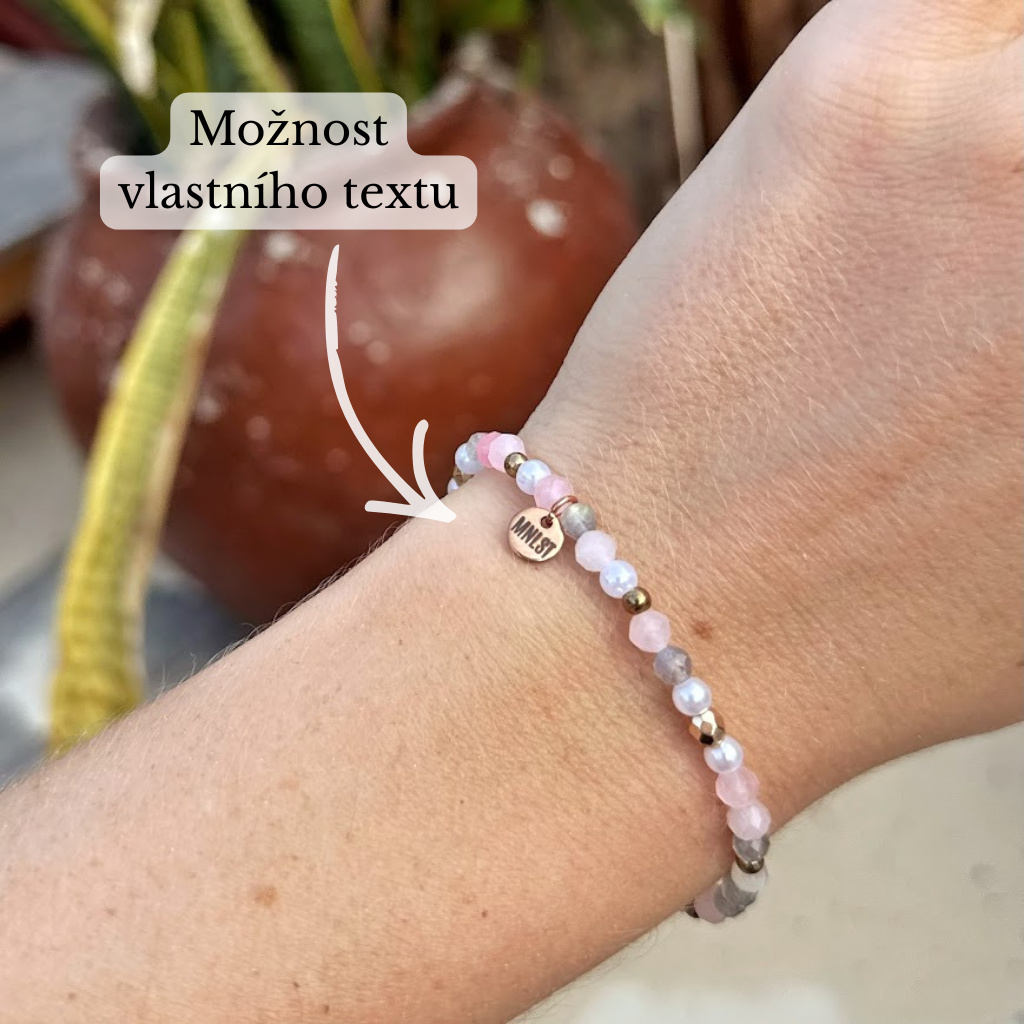 Každý náramek je ručně navlékaný s důrazem na detail a vyváženost barev. Díky pružnému provedení se pohodlně přizpůsobí zápěstí a je příjemný na celodenní nošení. Malý kovový medailonek s nápisem dodává náramku decentní osobitost a jemný podpis značky.
