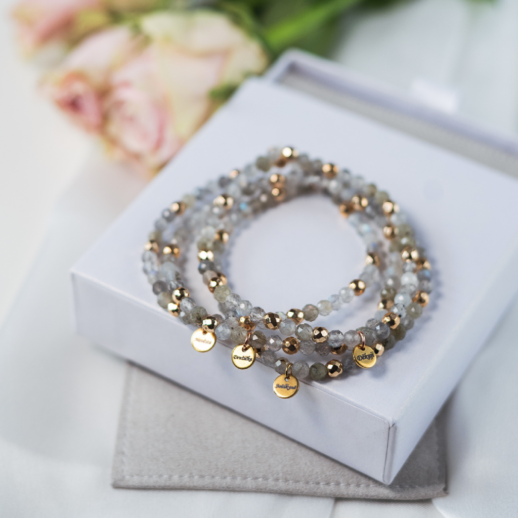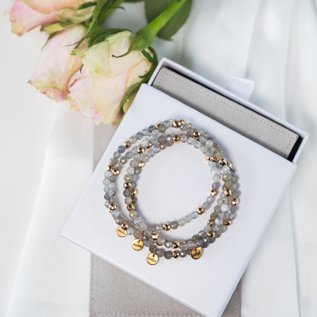 Každý náramek je ručně navlékaný s důrazem na detail a vyváženost barev. Díky pružnému provedení se pohodlně přizpůsobí zápěstí a je příjemný na celodenní nošení. Malý kovový medailonek s nápisem dodává náramku decentní osobitost a jemný podpis značky.