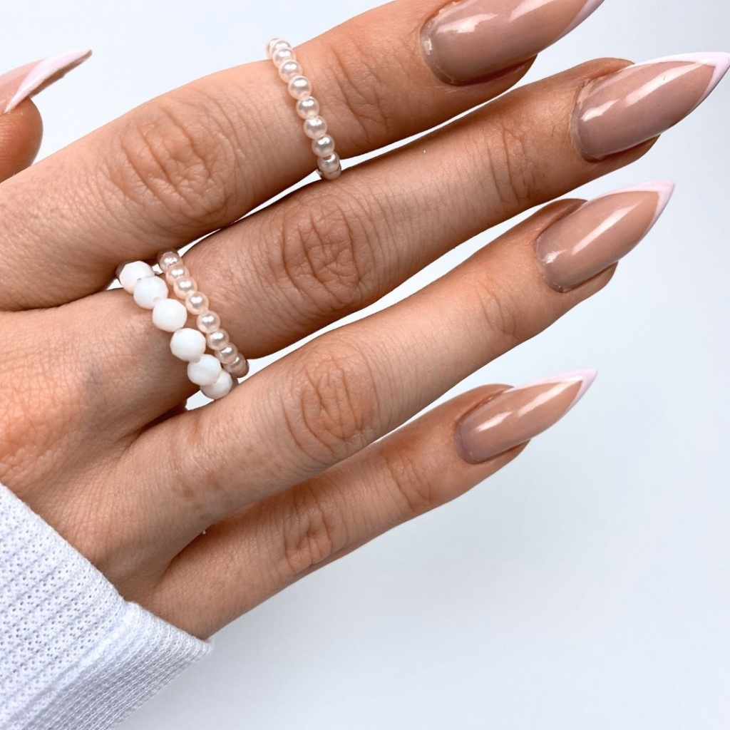 Bílý prstýnek (1ks). Na fotografiích je společně s perličkovými prstýnky Dia.